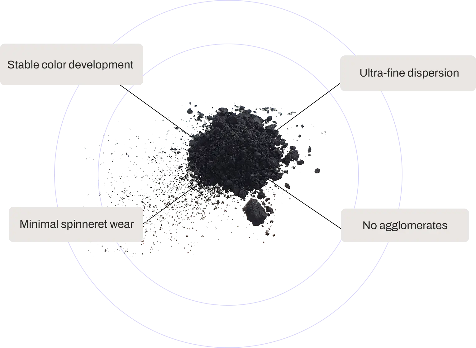 Carbon black is added directly into the polymer melt before spinning to permanently color the fiber.