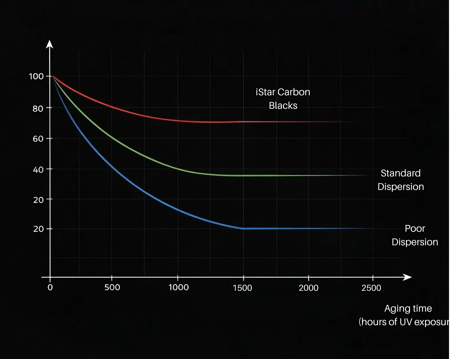 Slows UV- induced polymer degradation, preserves tensile strength and extends life of nylon fibre outdoors